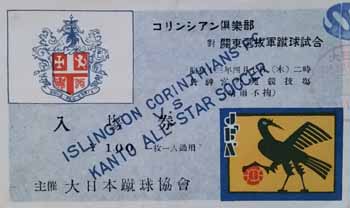 Islington Corinthians were an English amateur club founded in 1932 by Tom Smith, formerly of Tufnell Park, in order to raise money for local charities. In 1936 the Islington Corinthians were selected to play the Chinese Olympic team in a friendly at Highbury, and this was the catalyst for a 95-game world tour, which spanned the entire 1937-38 football season. During this World Tour, Islington travelled to Japan in 1938 to play a game against Kanto and thus became the first British football team to play in Japan. Kanto easily defeated Islington Corinthians 4-0 in the game.