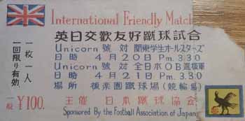 The official ticket for the two games between Kantou Gakuin Students All Stars and HMS Unicorn is shown below.