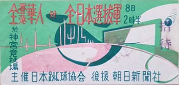 Japan defeated Hong Kong 4-3 on 8 June 1952. The official ticket for the game is shown below.