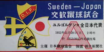 Djurgardens from Sweden travelled to Japan in November 1953 to play two games against the Japan National Team. The first game was played on 22 November and Djurgardens easily beat Japan 5-1. In the second game on 29 November Japan fared even worse as Djurgardens crushed Japan by a score of 9-1.
