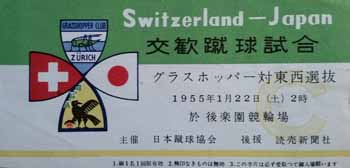 Grasshoppers Zurich from Switzerland travelled to Japan in January 1955 as part of their World Tour to play a game against the Japan National Team. The game was played on 22 January and Grasshoppers Zurich hammered Japan by a score of 7-1.