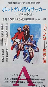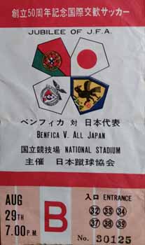 In 1970 Benfica, including the great Eusebio in their team, toured Japan playing three matches against the Japan National Team. The first game was played in Kobe on 25 August and was won 3-0 by Benfica. The second game played on 29 August in the Tokyo National Stadium was again won by Benfica by a score of 4-1. Benfica finished in style by hammering Japan 6-1 in the final match on 1 September, again in the Tokyo National Stadium.