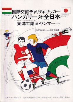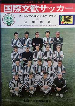 The official programme, which covers all three games has 12 x B5 pages (three of which are adverts) and is all in Japanese. The programme begins with an introduction from the Japanese Football Association and details of the three games to be played by Ferencvaros on their tour. There is then a two page article on Ferencvaros and a further two pages listing the Ferencvaros squad together with small photos of the players and officials. Details of the Japan National Team Squad are given along with small photos of their players. Finally there is a page where the scores and line-ups etc. can be entered.