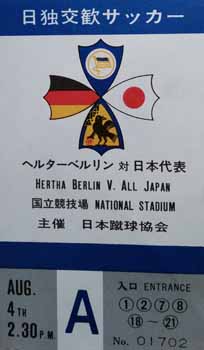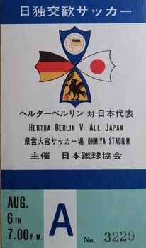 Hertha Berlin of Germany travelled to Japan in August 1974 to play three games against the Japan National Team. The first two games were drawn 2-2 and 1-1 on 2 August and 4 August respectively before Hertha Berlin won the final game 2-0 on 6 August.