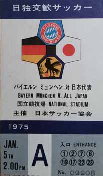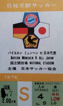 In 1975 European Champions Bayern Munich (including great players such as Franz Beckenbauer, Uli Hoeness, Sepp Maier, Gerhard Muller and a young Karl Heinz Rummenigge in their team) played two matches against the Japan National Team in Tokyo. Bayern won the first game on 5 January 1-0 and comfortably won the second match 4-1.