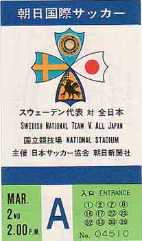 The Swedish National Team travelled to Japan in March 1975 to play three games against the Japan National Team, beating them 1-0, 4-1 and 2-0 on 2 March, 5 March and 8 March respectively.
