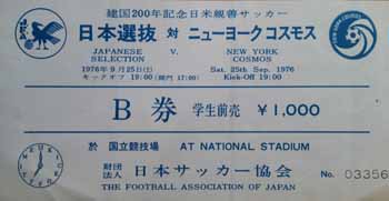 New York Cosmos, including Pele, travelled to Japan in September 1976 to play two friendly games against a Japanese Selection. The first was drawn 0-0 on the 23 September, and the second 2-2 on the 25 September.