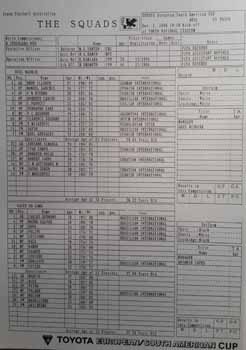 The official 1998 Toyota Cup Final programme has 92 x colour A4 pages (with 26 pages of adverts). Apart from the introductions, the programme is all in Japanese. The programme begins with introductions from FIFA, UEFA, CONMEBOL, the JFA and TOYOTA. The programme then has a page to enter the line-ups together with a small feature on match referee Maria Sanchez Yanten from Chile. The programme gives full details and photos of Real Madrid and Vasco de Gama and their players along with further information and full page photos of star players including Roberto Carlos and Davor Suker of Real Madrid and Luizao and Donizete of Vasco de Gama amongst others. The programme also has articles on rival managers Guus Hiddink of Real Madrid and Antonio Lopes of Vasco de Gama and an article on the teams home cities of Madrid and Rio de Janeiro. The programme includes details and photos from the previous eighteen Toyota Cup Finals and an article on previous Intercontinental Cup Finals. The programme details how Real Madrid and Vasco de Gama won the 1998 UEFA Champions League and 1998 Copa Libertadores respectively and finishes with an article on World Football.