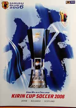 The official 2006 Kirin Cup programme has 76 x glossy colour A4 pages and apart from some of the introductions in English is all in Japanese. The programme includes the list of fixtures and details of the Japan national team squad with small photos of each of their players. The Bulgaria and Scotland national team squads are also given but without photos of the players. There is an article covering details of every one of Japan's games with Zico as Head Coach. There are special articles on the Japan, Bulgaria and Scotland teams. There are articles on World Cup 2006 and Euro 2008. There are details of previous Kirin Cup Tournaments. Finally there are details of the Japan and USA Woman's National Team Squads who were playing each other ahead of the opening Kirin Cup game involving Japan in Osaka.