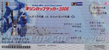 The 2006 Kirin Cup featured Japan, Bulgaria and Scotland. In the opening game in Osaka on 9 May 2006 Bulgaria defeated Japan 2-1 with goals from Svetoslav Todorov and a last minute goal from Hristo Yanev. In the second game in Kobe on 11 May Scotland defeated Bulgaria 5-1 with two goals from Kris Boyd on his Scotland debut, a goal from James McFadden and two goals from Chris Burke also on his Scotland debut. In the final game in Saitama on 13 May Scotland held Japan to a 0-0 draw to win the 2006 Kirin Cup.